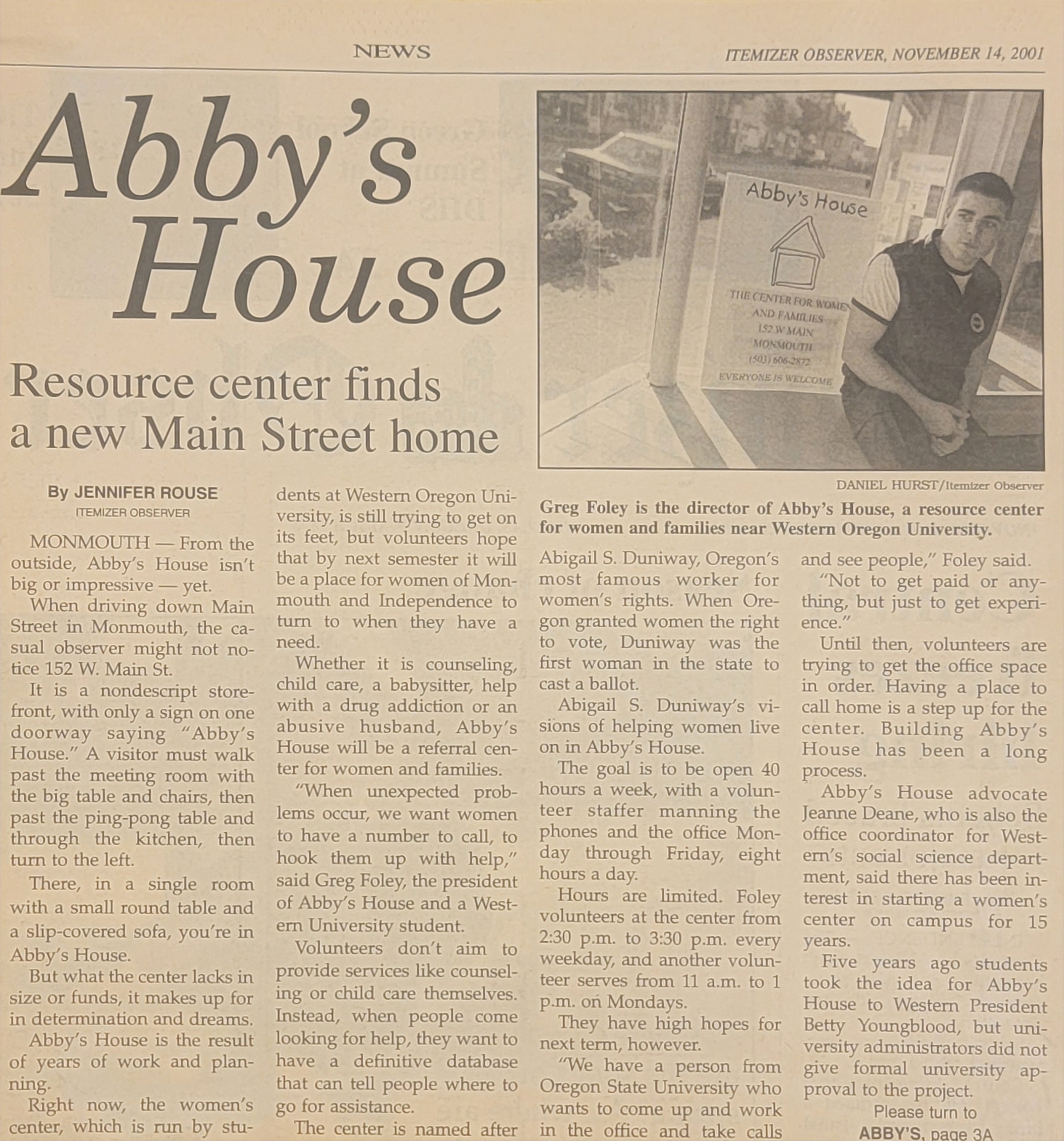In the photo gallery on the right, we have selected some news clippings that highlight our history in Abby’s House. Feel free to read through the articles and our added context