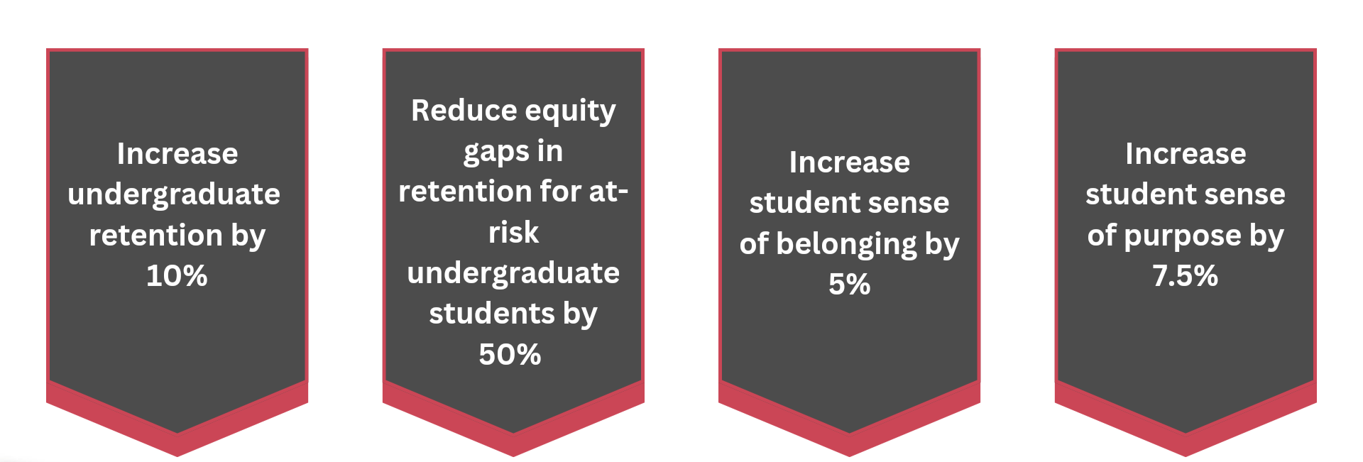 The Retention and Student Success Project contains five main activities created to achieve the project objectives. These include increasing assessment, improving the student experience, investing in instructional design, creating better clarity of degree paths and increasing opportunities for career readiness. Click here to learn more!
