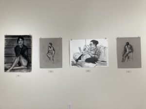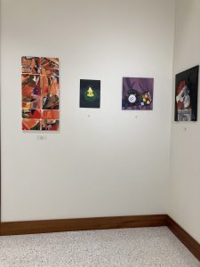 Featuring artwork by 2020 graduate Rachel Hetzel, and 2021 graduates Darrian Rodriguez and Marita Nash.
