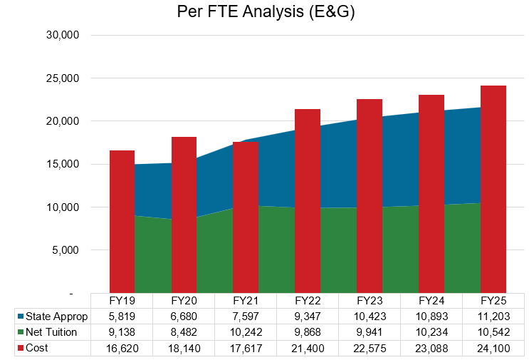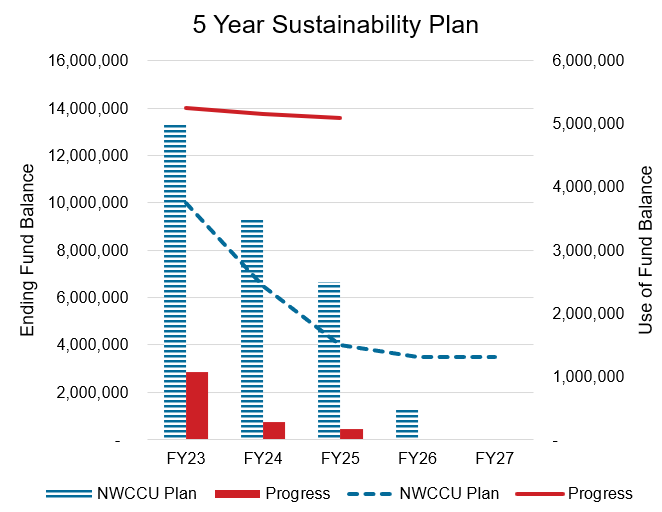 Composite Financial Index (CFI) provides an overall assessment of the University’s financial health. It is computed by calculating the values of the four core ratios: Primary Reserve Ratio, Viability Ratio, Return on Net Assets Ratio, and Net Operating Revenues Ratio. These ratios are converted to a strength factor along a common scale, with strength factors capped at 10 and floored at -4. The strength factors are multiplied by specific weighting factors, with heavier emphasis on Balance Sheet driven ratios. The resulting four weighted factors are totaled to compute the single CFI score, ranging from -4 to 10. A lower CFI score indicates financial considerations need to be made, while a higher CFI score reflects a more stable financial environment.
