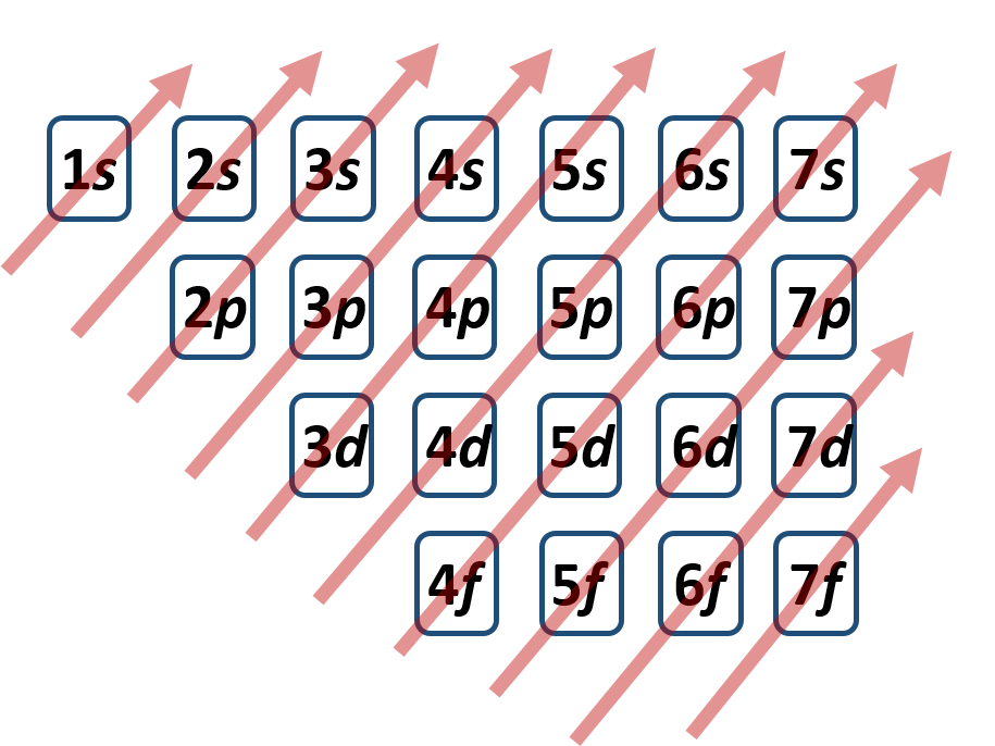 To use your chart, you need to draw in diagonal arrows in the direction of electron filling. The final diagram tool should look like this:
