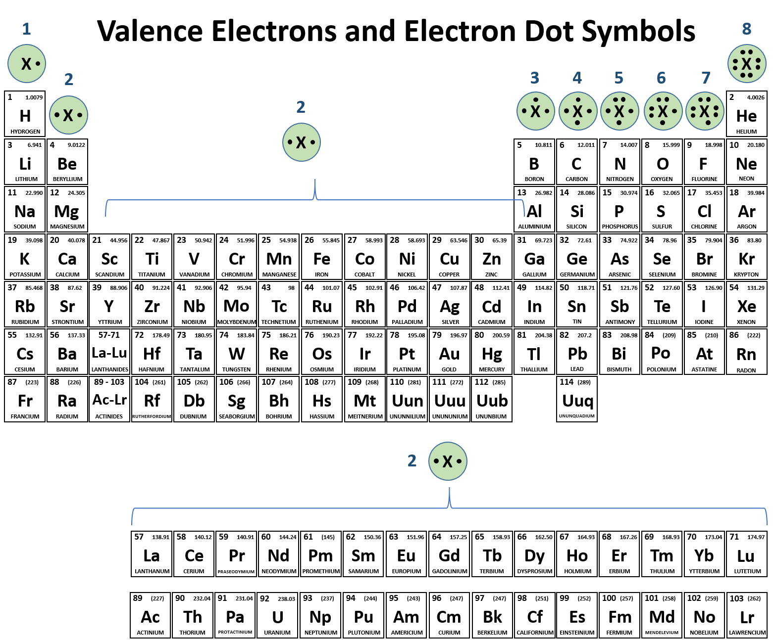 Figure 2.16 Valence Electrons and Electron Dot Symbols.