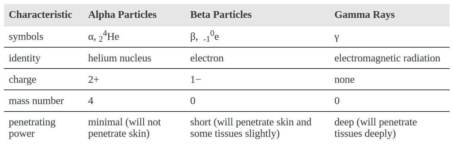Table 2.5 Characteristics of Radioactive Particles
