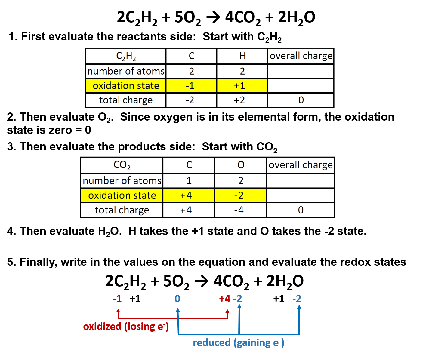 The oxidation state of an element corresponds to the number of electrons, e–, that an atom loses or gains during an ionic bond, or appears to lose/grain when joining in covalent bonds with other atoms in compounds. In determining the oxidation state of an atom, there are seven guidelines to follow: