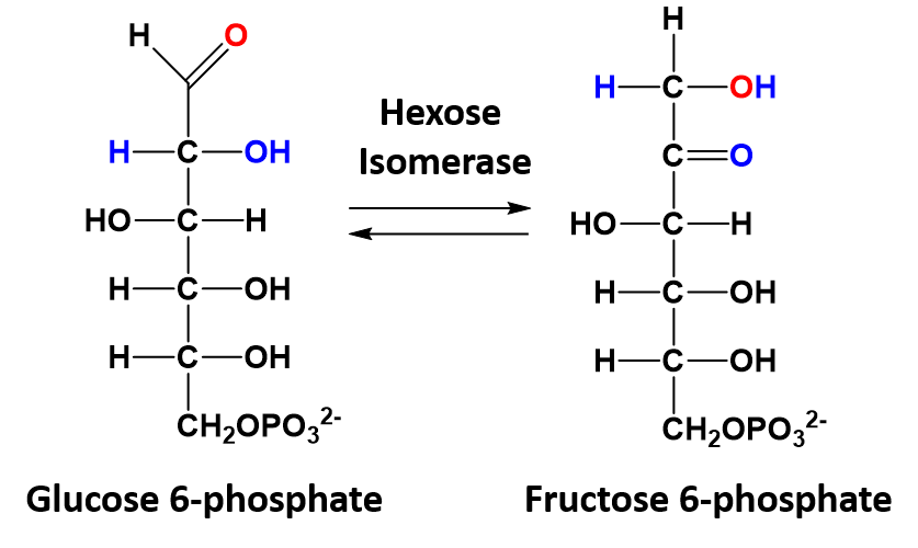 Figure 7.5 Isomerization of Glucose 6-phosphate to Fructose 6-phosphate.