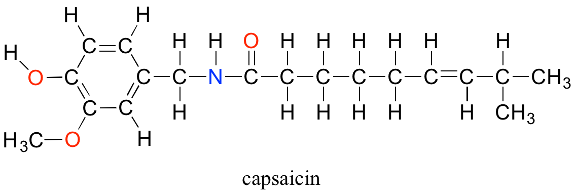 Although ‘organic chemistry’ no longer means exclusively the study of compounds from living things, it is nonetheless the desire to understand and influence the chemistry of life that drives much of the work of organic chemists, whether the goal is to learn something fundamentally new about the reactivity of a carbon-oxygen bond, to discover a new laboratory method that could be used to synthesize a life-saving drug, or to better understand the intricate chemical dance that goes on in the active site of an enzyme or receptor protein. Although humans have been eating hot peppers and vanilla-flavored foods for centuries, we are just now, in the past few decades, beginning to understand how and why one causes searing pain and the other pure gustatory pleasure. We understand that the precise geometric arrangement of the four elements in capsaicin allows it to fit inside the binding pocket of the TrpVI heat receptor, but as of today, we do not yet have a detailed three dimensional picture of the TrpVI protein bound to capsaicin. We also know that the different arrangement of carbon, hydrogen and oxygen atoms in vanillin allows it to bind to specific olfactory receptors, but again, there is much yet to be discovered about exactly how this happens.