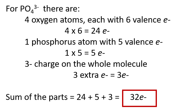 (2) Count the total number of valence electrons present in the molecule. To do this add up all the valence electrons for each atom present.