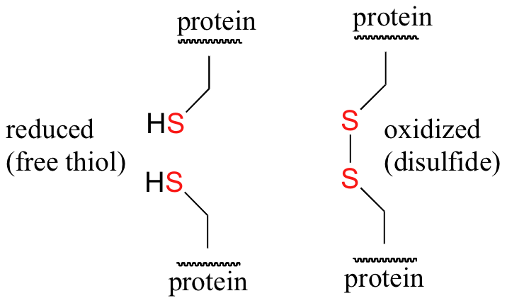In the hair protein, keratin, disulfide bonds are formed by oxidation of the sulfhydryl groups on cysteine. Different protein chains or loops within a single chain are held together by the strong covalent disulfide bonds. In the permanent wave process, a basic reducing substance (usually ammonium thioglycolate) is first added to reduce and disrupt the disulfide cross-links.