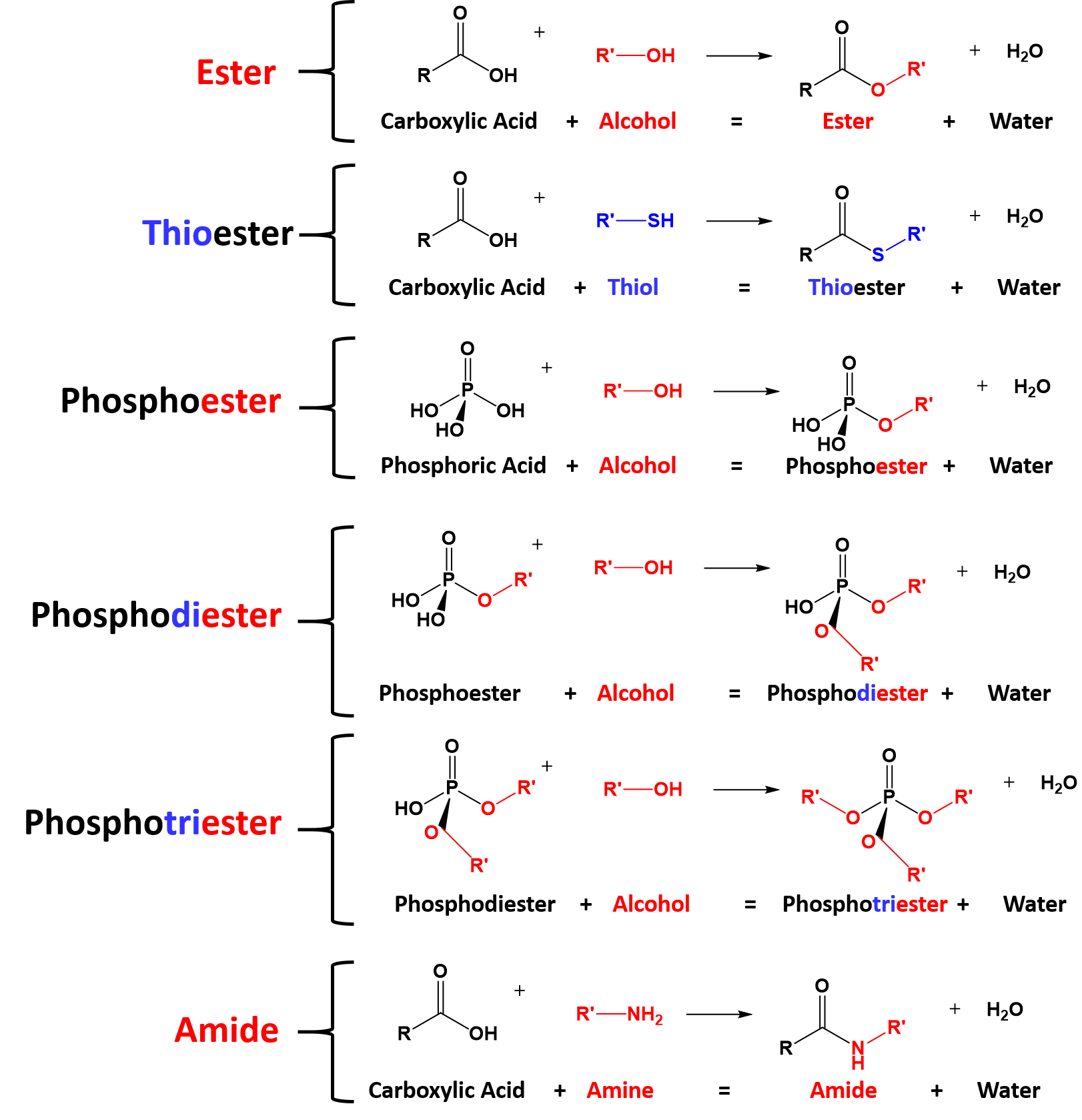 Oxygen is the most common and plentiful heteroatom found in organic molecules and is a constituent of all the major macromolecules found in the human body (proteins, carbohydrates, fats/lipids, and nucleic acids). In addition to oxygen, sulfur, phosphorous and nitrogen are also common heteroatoms that have special roles in biological systems. Nitrogen is a key component in proteins and phosphorous is found in deoxyribonucleic acid (DNA), and ribonucleic acid (RNA). Sulfur is found in more limited quantities in protein, as well as in many other small molecules found in the human body, including several vitamins. Sulfur-containing organic compounds are also required for the biosynthesis of many chemical signaling molecules such as hormones and neurotransmitters. Thus, this chapter will focus on organic functional groups and the associated chemical reactions associated with nitrogen, sulfur, and phosphorus containing molecules.
