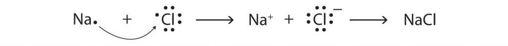 The transfer of electrons can be illustrated easily with Lewis diagrams. In the following diagram sodium transfers an electron to chlorine: