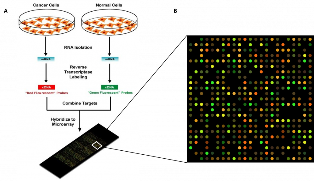 Wikipedia contributors. (2019, September 28). DNA microarray. In Wikipedia, The Free Encyclopedia. Retrieved 04:53, October 8, 2019, from https://en.wikipedia.org/w/index.php?title=DNA_microarray&oldid=918427523