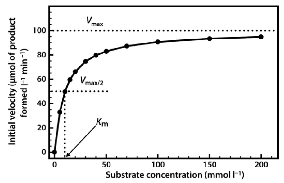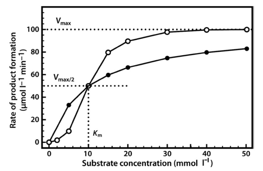 - An enzyme with a high Km value relative to the physiological concentration of substrate will not be saturated with substrate, and its activity will therefore vary according to the concentration of substrate, so the rate of formation of product will depend on the availability of substrate.