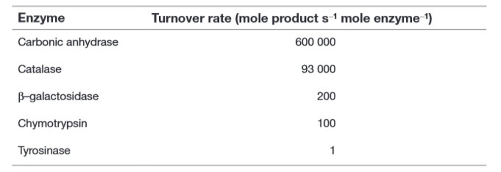 Table 6.1 Turnover Rate of Some Common Enzymes Showing Wide Variation