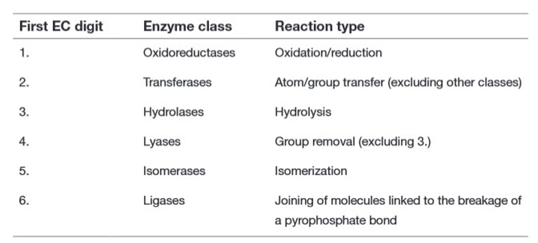 Table 6.2 Enzyme Classification: Main Classes of Enzymes in the EC System