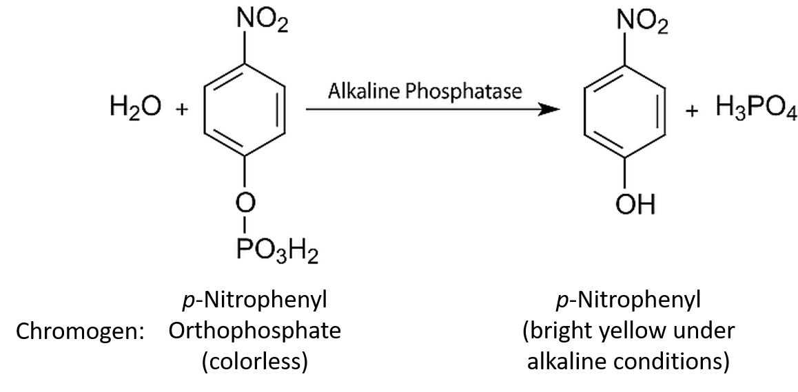 In continuous enzyme assays we would generally study the rate of an enzyme-catalysed reaction by mixing the enzyme with the substrate and continuously measuring the appearance of product over time. Of course we could equally well measure the rate of the reaction by measuring the disappearance of substrate over time. Apart from the actual direction (one increasing and one decreasing), the two values would be identical. In enzyme kinetics experiments, for convenience we very often use an artificial substrate called a chromogen that yields a brightly coloured product, making the reaction easy to follow using a colorimeter or a spectrophotometer. However, we could in fact use any available analytical equipment that has the capacity to measure the concentration of either the product or the substrate.