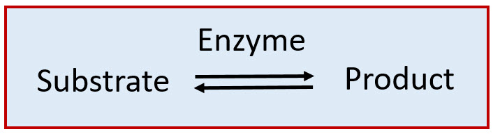 As catalysts, enzymes are only required in very low concentrations, and they speed up reactions without themselves being consumed during the reaction. We usually describe enzymes as being capable of catalyzing the conversion of substrate molecules into product molecules as follows: