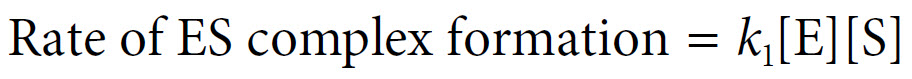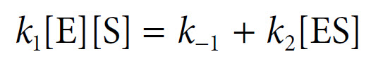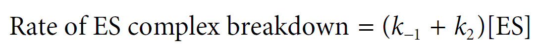 The rate of formation of the ES complex and the rate of its breakdown must therefore balance, where: