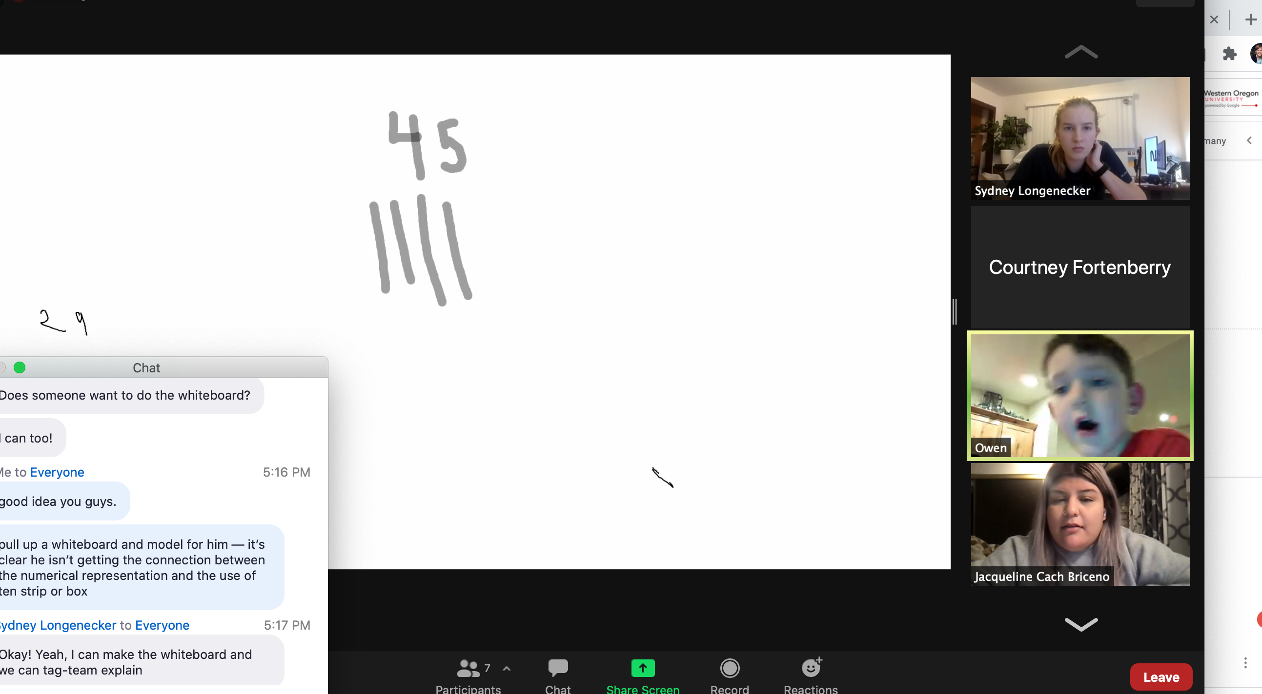 During fall term students in WOU’s Undergraduate Teacher Licensure Program tutored more than 300 K-12 students in online mathematics tutoring sessions.