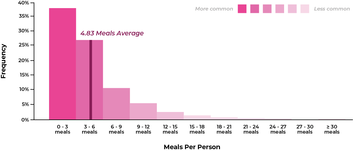 Result: About 75% of customers shop for between 0 and 6 meals per person