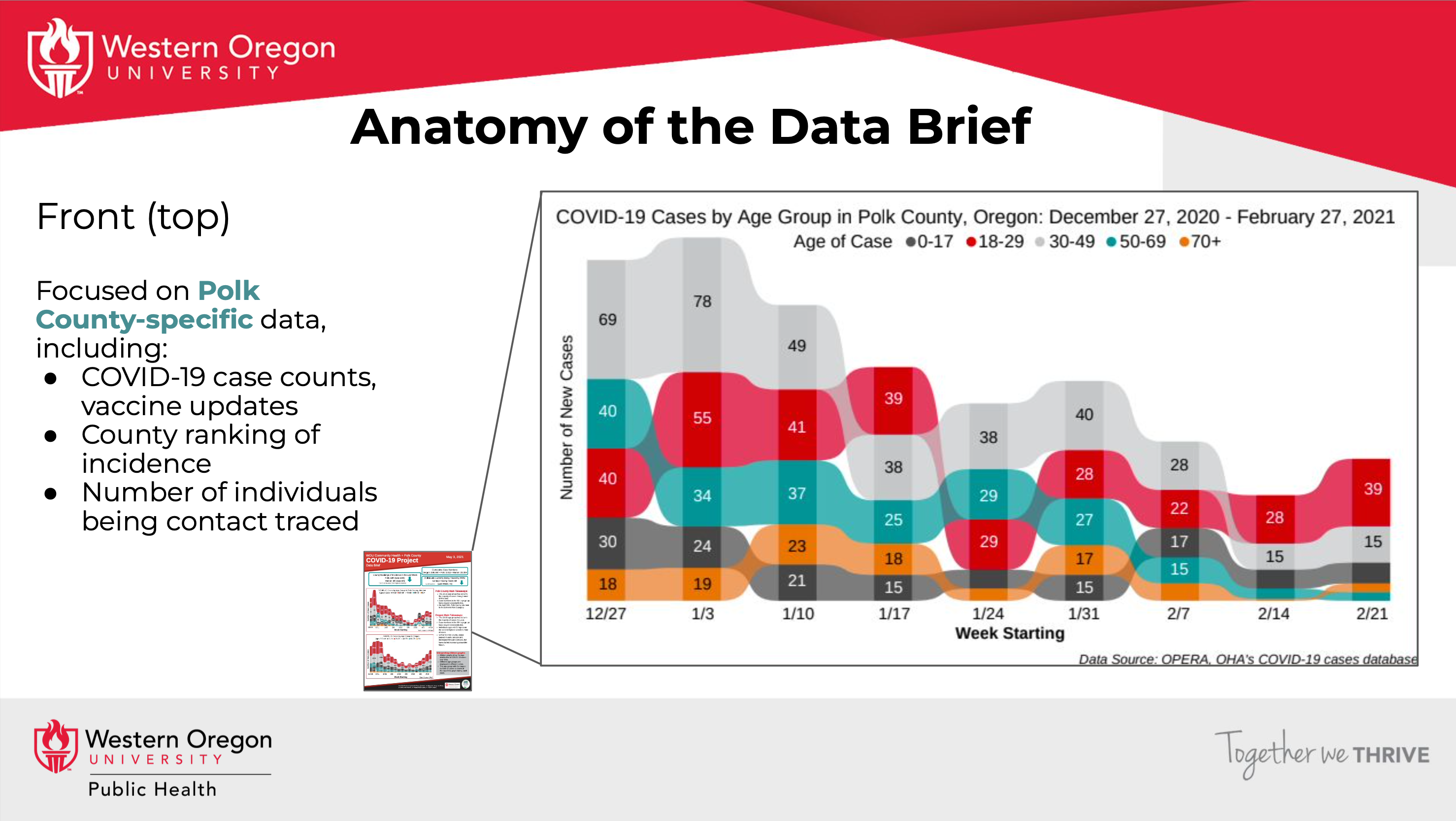 The WOU Community Health and Polk County COVID-19 Project was initiated in June 2020 in response to the COVID-19 pandemic by two amazing, dedicated, and hard-working professors, Dr. Emily Vala-Haynes and Megan Patton-Lopez.