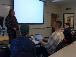 On April 10, James Masnov (History, B.A., 2017) attended the HST 499 Senior Seminar class, which focused on the development of an effective introduction and thesis statement for the seminar papers being completed through the class. James will begin a Master’s program in History at Portland State University this fall. At the beginning of the class, James shared his own thesis-writing experience with the students and described how his introduction and thesis statement had been the result of extensive editing and revision. He then fielded some questions from the class regarding his experiences in HST 499. James participated in the rest of the class meeting, which was a peer-review workshop in which students took turns presenting a draft of their introduction (including a thesis statement) on the projection screen using the document camera. James is a natural mentor and offered constructive and thoughtful feedback to the class. James made a second visit to the HST 499 class on May 22 to help give feedback to students practicing their Academic Excellence Showcase presentations.