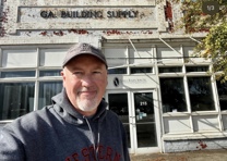 Image: This is a photo of me in front of the site of my first job at a building supply store.