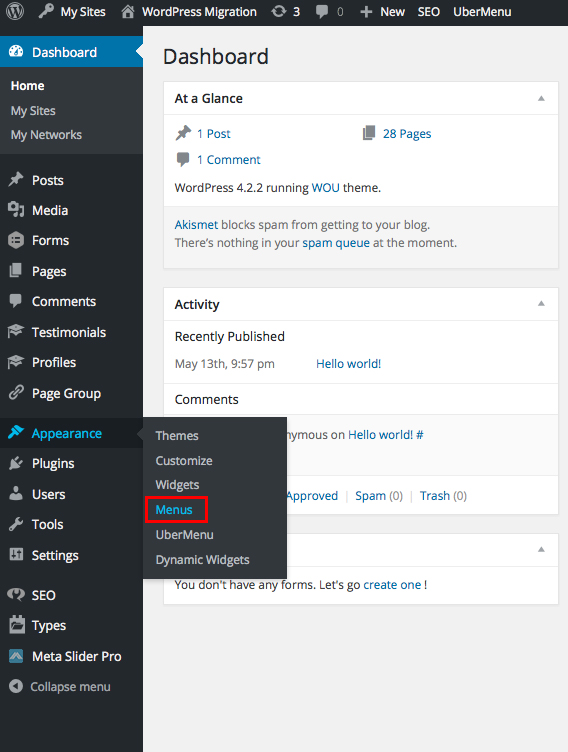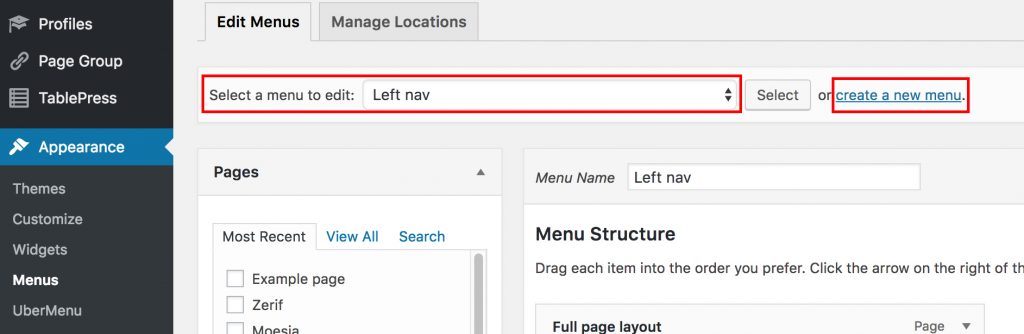 Under the menu selection either create a new menu or select the one you would like to edit.