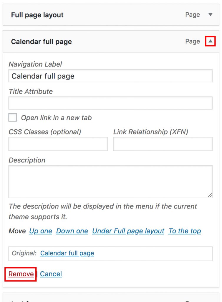 If you would like to delete a page from your menu click on the arrow to the right of the Page and select Remove