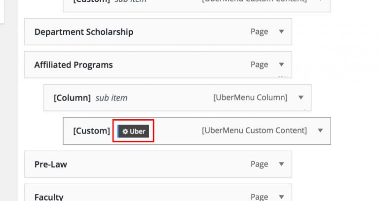 - Hover over the Custom Content block and click on the Uber settings icon.