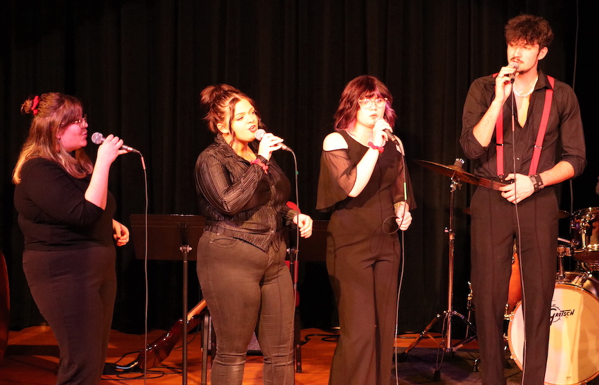 Winter 2024: How High the Moon (arr. Jay Althouse), Yardbird Suite (arr. Jennifer Barnes), Poppy Seeds (original composition by Nathan Richardson, ’24, combo tune), Blackbird (arr. Paris Rutherford), Scorpion (arr. saje), House of Gold (arr. Bryan Sharpe), Misty (arr. WOU Voice Combo), and I’m Still Standing (arr. K. Marsh).