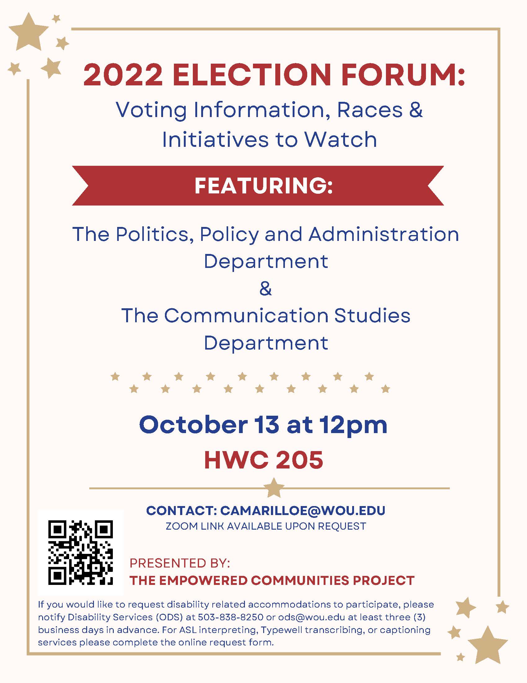 For more information, contact Dr. David Doellinger, 503-838-8254, doellind@wou.edu.