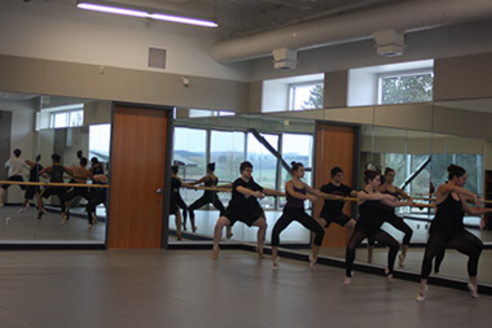 The dance department also has a home in OPE building, where many of the faculty offices are accompanied by a third dance studio. Multiple studios allow dancers to reserve space for individual practice, or for groups and clubs to utilize the space.
