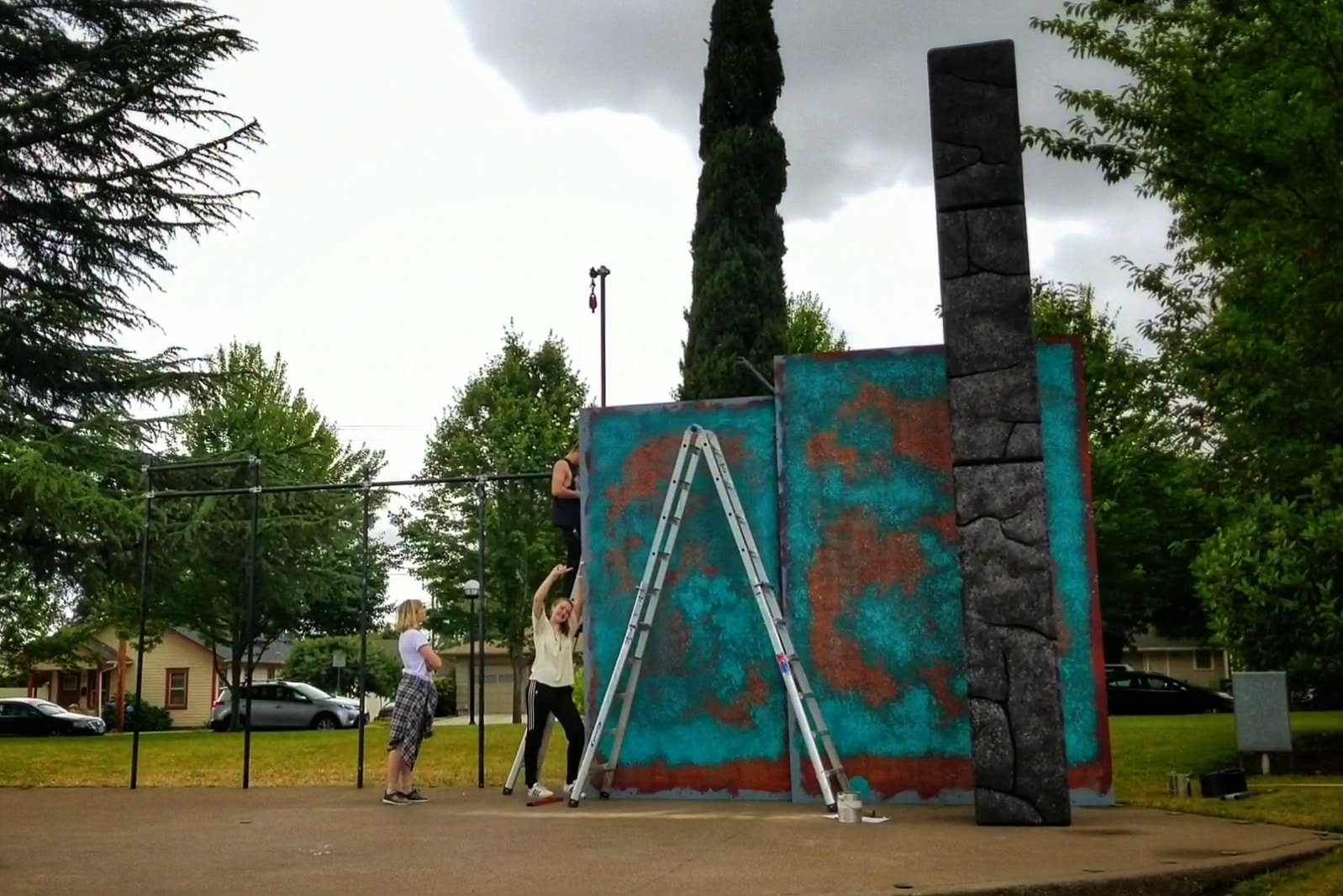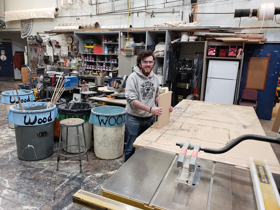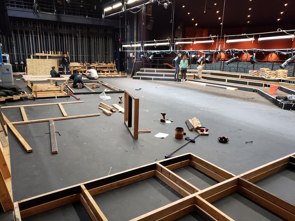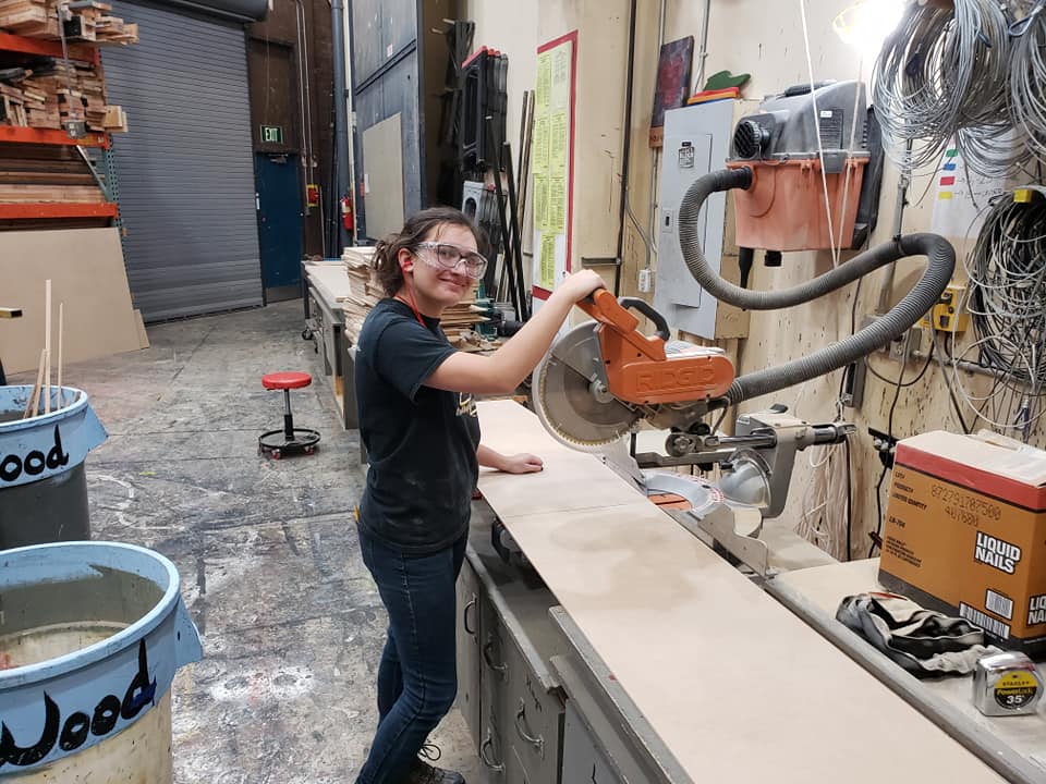 The Scene shop builds the sets for all of our mainstage productions, our studio production, and the summer production for the Valley Shakespeare Company. Student workers learn to interpret blueprints and construct those plans safely and professionally. Students may work in the shop for production credit or for pay.
