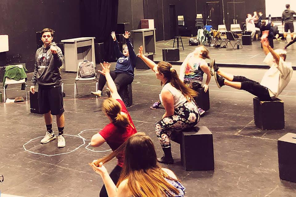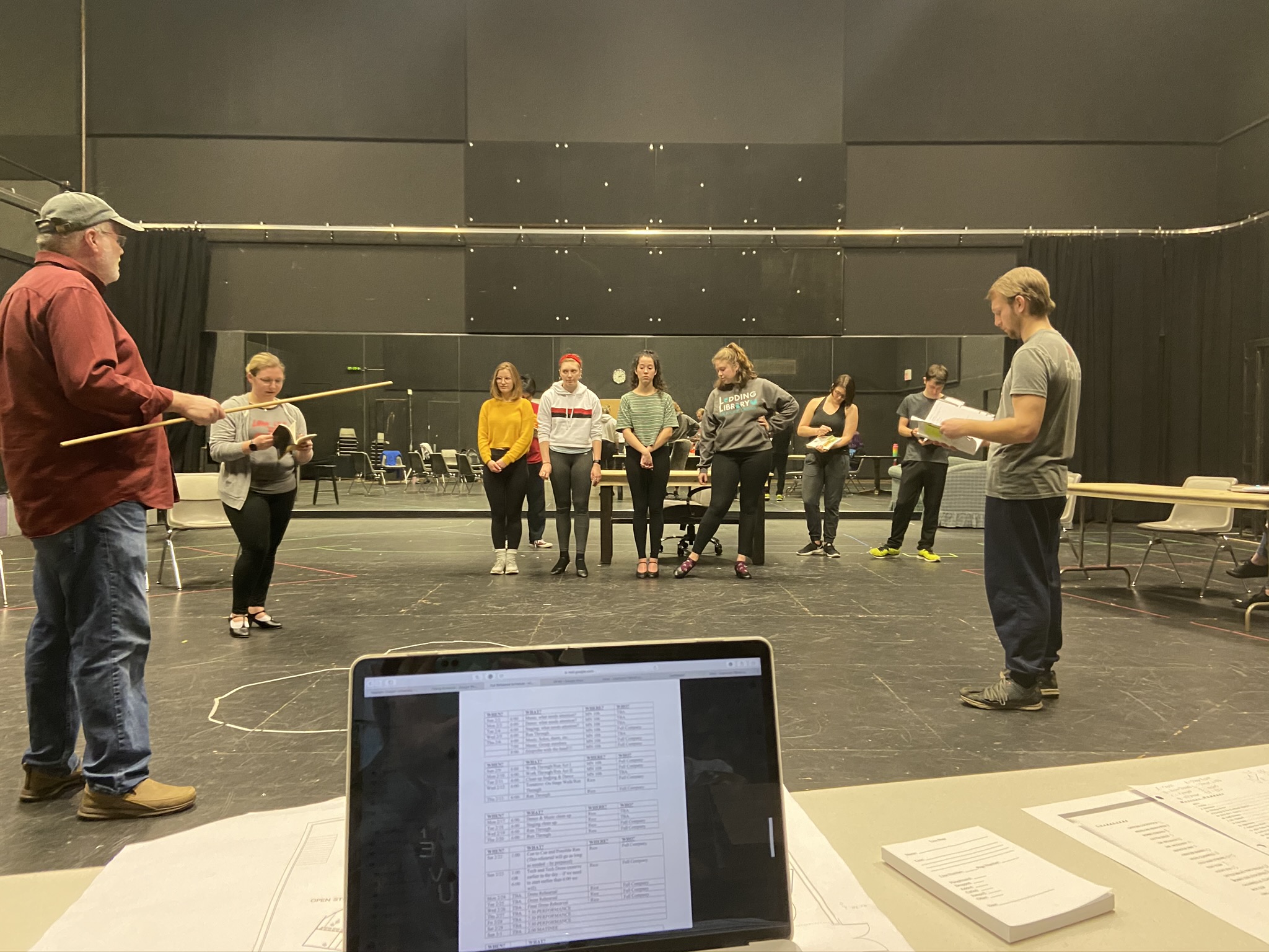 The usually quiet Ted Winter’s Building (The Math & Nursing Building) has a secret. MNB 108 acts as our primary acting studio and rehearsal space. The room has an assortment of furniture and full length mirrors in addition to plenty of space to work and create. The space will occasionally hold performances and workshops.