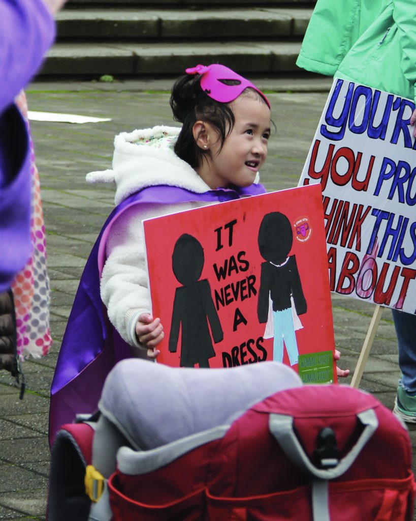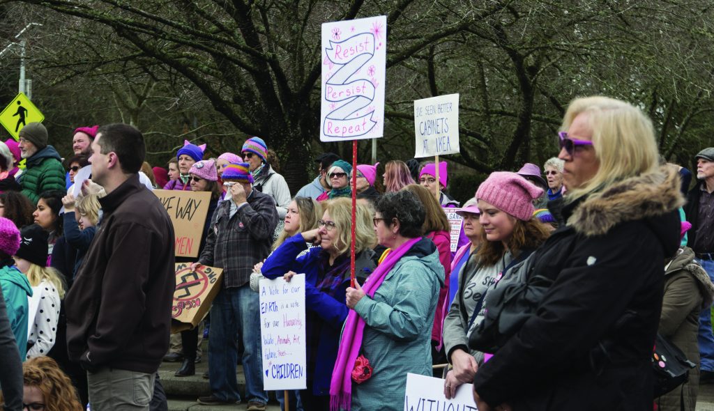 With painted cheeks, decorated signs and their own reasons for marching, a substantial crowd of different gender-identities gathered together on the morning of Jan. 19 to support the diversity and strength of womanhood.