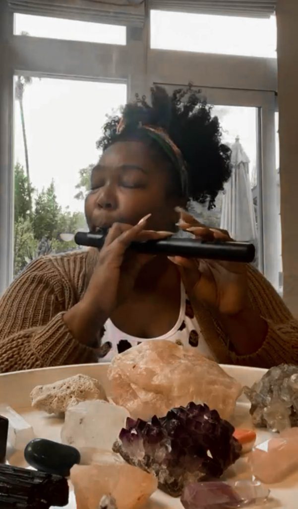 Lizzo has posted a beautiful 30-minute meditation video with her crystals and flute to accompany her.