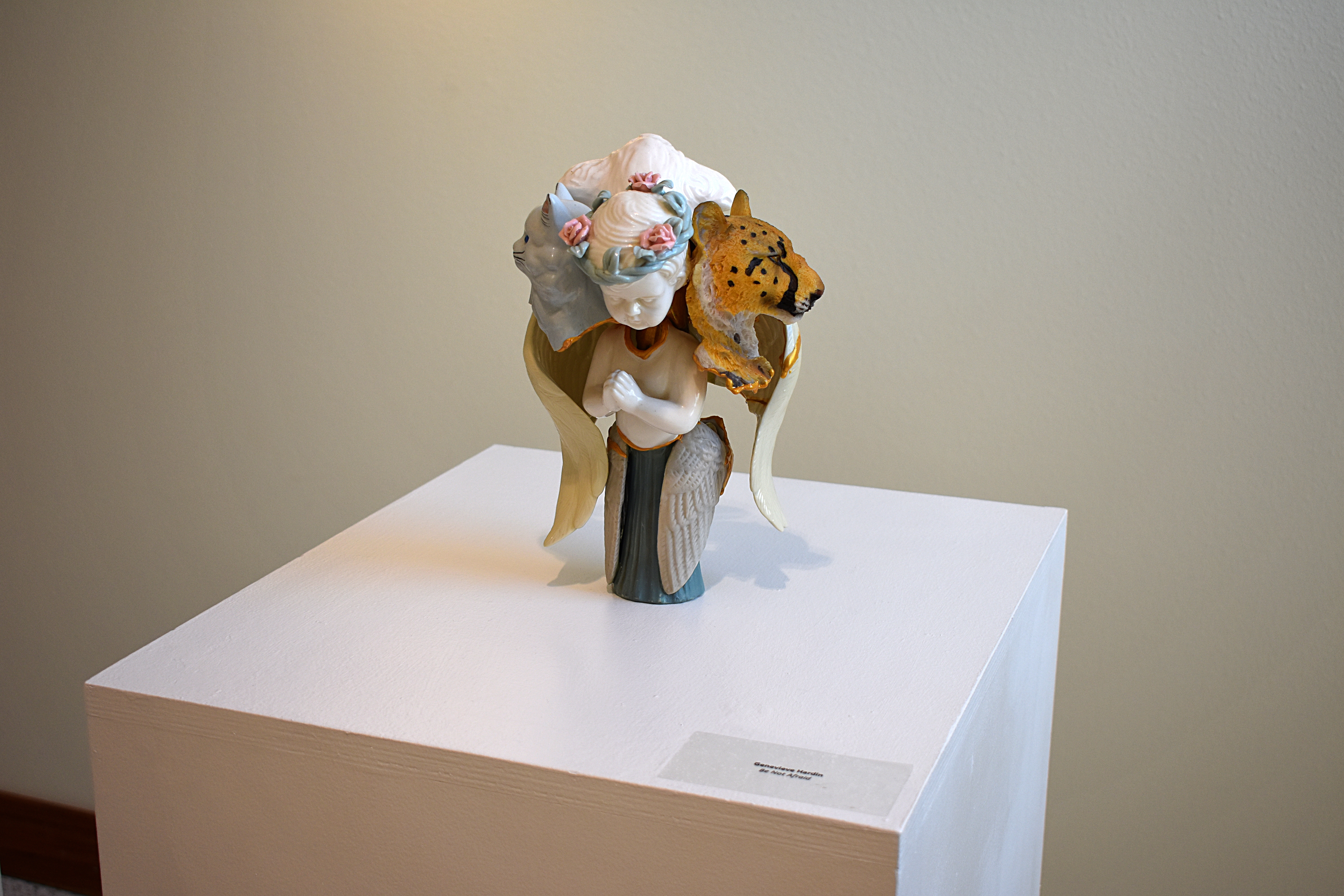 Graduate student Genvieve Hardin has two pieces in the gallery, sculptures “D20” and “Be Not Afraid.” Hardin is in the Master of the Arts in Teaching program, and has expressed her excitement for having her work in the ITC gallery.