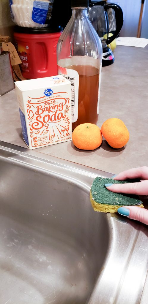Following the trend of baking soda, vinegar and citrus fruits, all of these things can be used to make a sink clean and shiny. Sponge the surface with a baking soda and vinegar concoction, rinse, and then use the peel of a lemon or orange to deodorize. Finally, buff the sink with some sort of rag, sponge or paper towel and olive oil, which will repel water and keep the sink shiny for a while before it needs to be cleaned again.