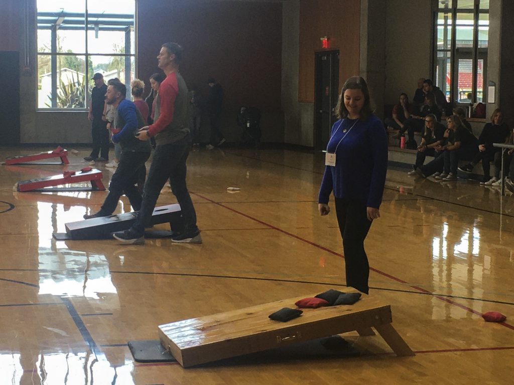 The WUC wasn’t the only place holding events on campus; over at the Student Health and Wellness Center, first-year Nate Henninger’s mother, Tracie Henninger, and the rest of their family waited for their turn during the Cornhole Tournament. Tracie said that the transition of Nate going to college wasn’t too hard, as they live only an hour away.