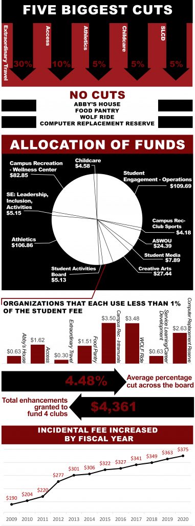 “We cut almost every budget operationally, and that’s because the inflation was so much that, if we fully funded everyone, the fee would have gone up way more,” said Rhodes. “I think becoming the most affordable school in Oregon means you have to make cuts that scare people — like cuts to ASWOU or cuts to athletics — cuts to areas that people might question or that people might not like, but we had to make some hard decisions.”