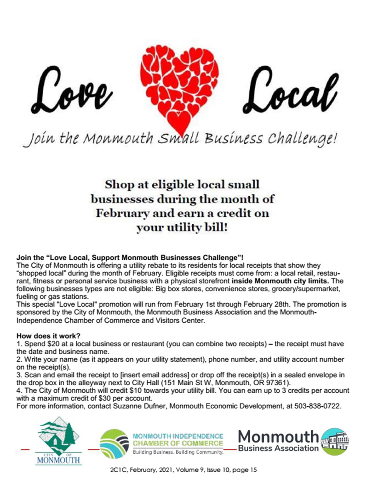 In honor of Valentine’s Day, Monmouth and Independence have come together to dedicate the entire month of February to the purchase of products from local businesses, known as the “Love Local” event. In each town, residents are rewarded with different benefits.