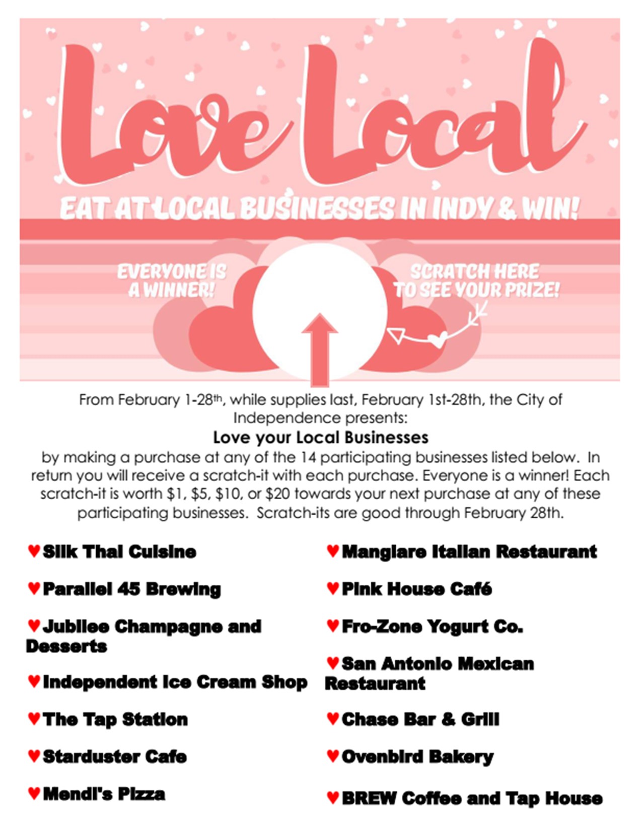For businesses in Independence, patrons who make purchases from any of the 14 participating businesses will receive a scratch it ticket worth $1, $5, $10 or $20 that will go towards their next purchase.