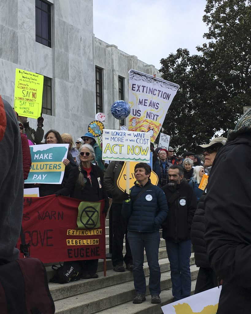 Oregonians supporting the efforts of Renew Oregon say that the bill is in response to what they believe is a current climate emergency and that the government and the fossil fuel industry are lying about the state of the environment. They counter Timber Unity’s argument, saying that the bill will actually work to provide more jobs, while acknowledging that sacrifices need to be made in order to survive.