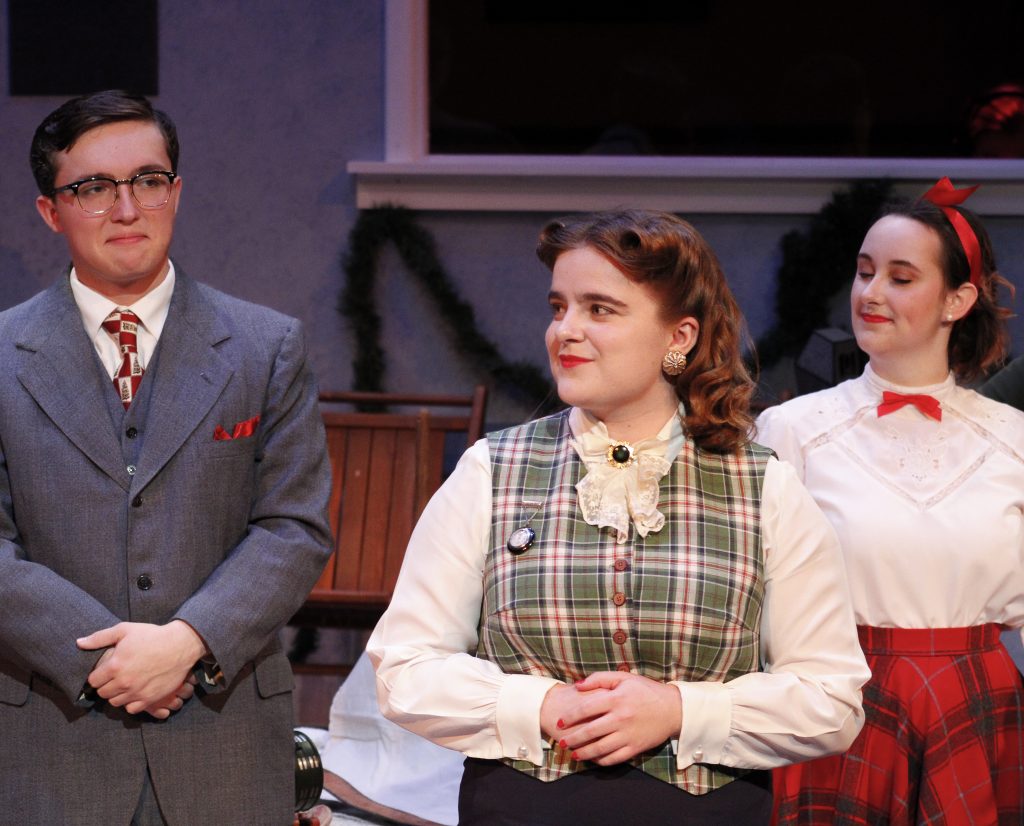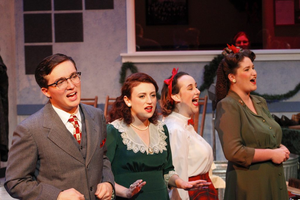 Landry’s adaptation is a radio show reading, where the actors on stage are acting like they are actors for a radio. This brought some much needed comedy into the somewhat sad play, with silly ads for dandruff and dirty car windows sung to the tune of classic Christmas carols.