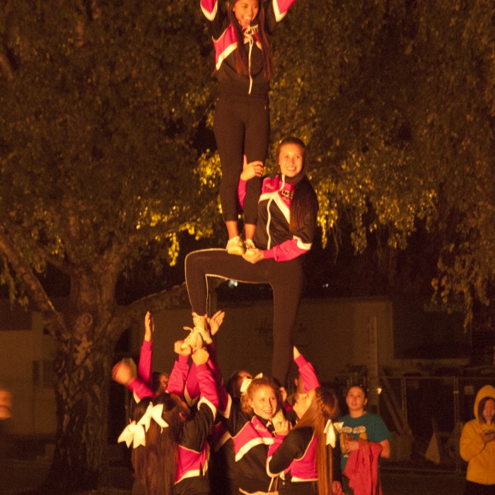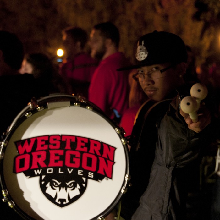 The bonfire was accompanied by the school pep band, a KWOU DJ, and Western’s cheerleading squad.