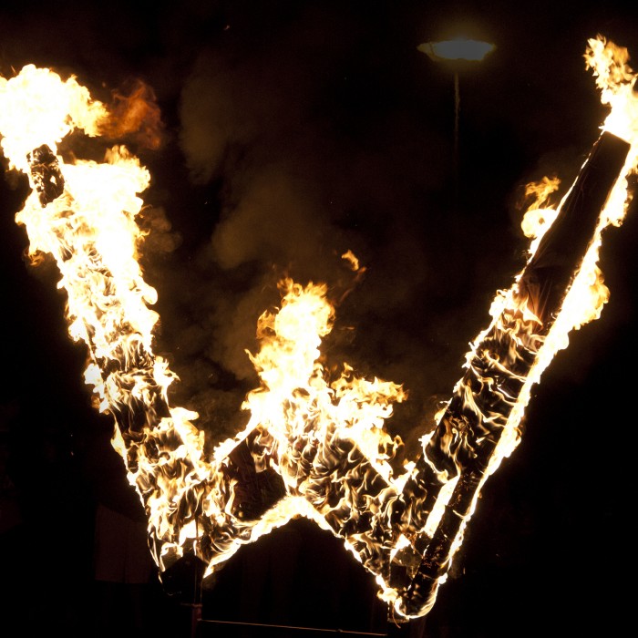 The Western “W” shaped effigy fire blazed for a good hour and a half before burning the separate pile of stacked wood to cinders. During the fire, students could watch a pie eating contest and snacks were offered to students at no cost.
